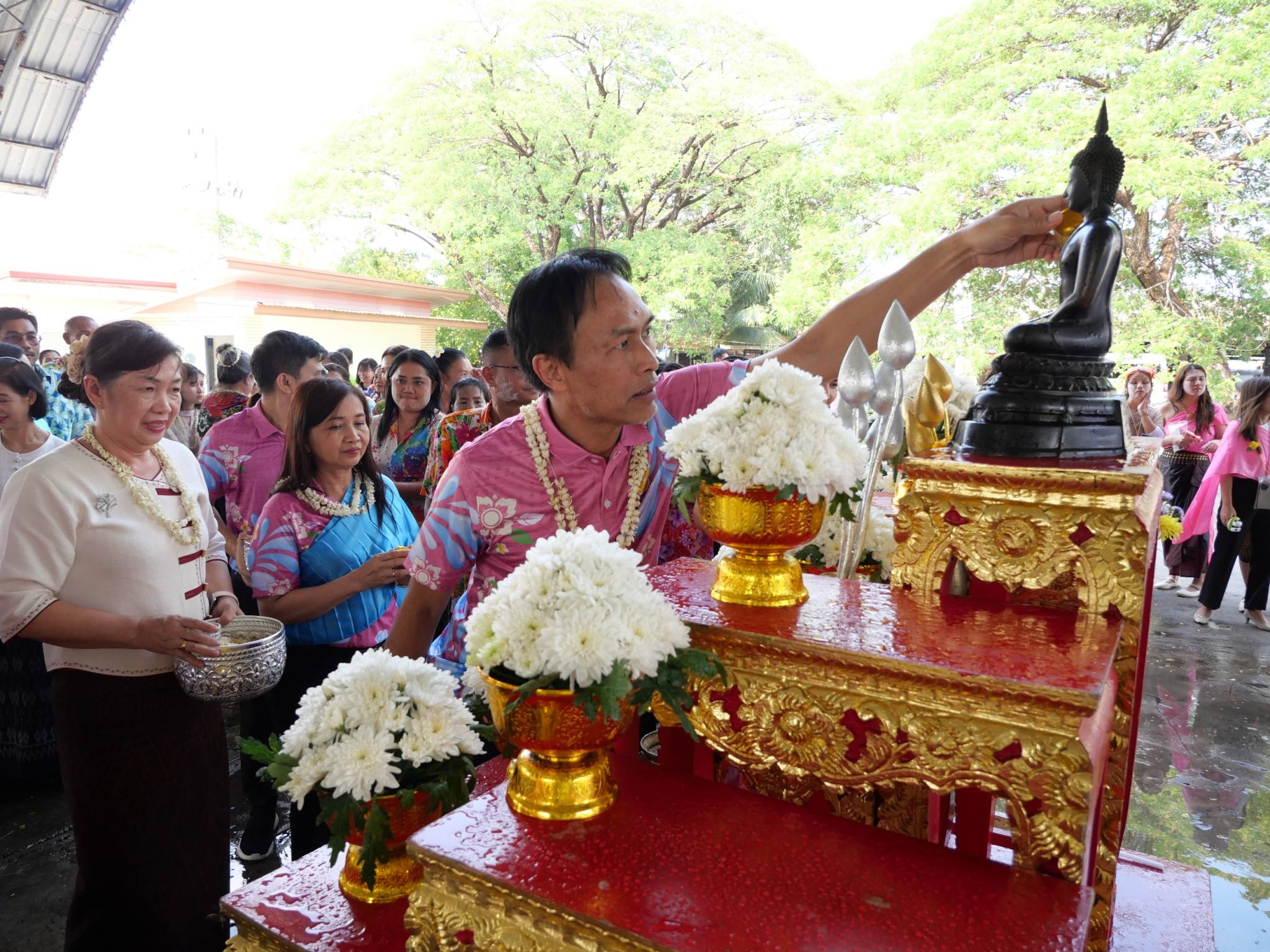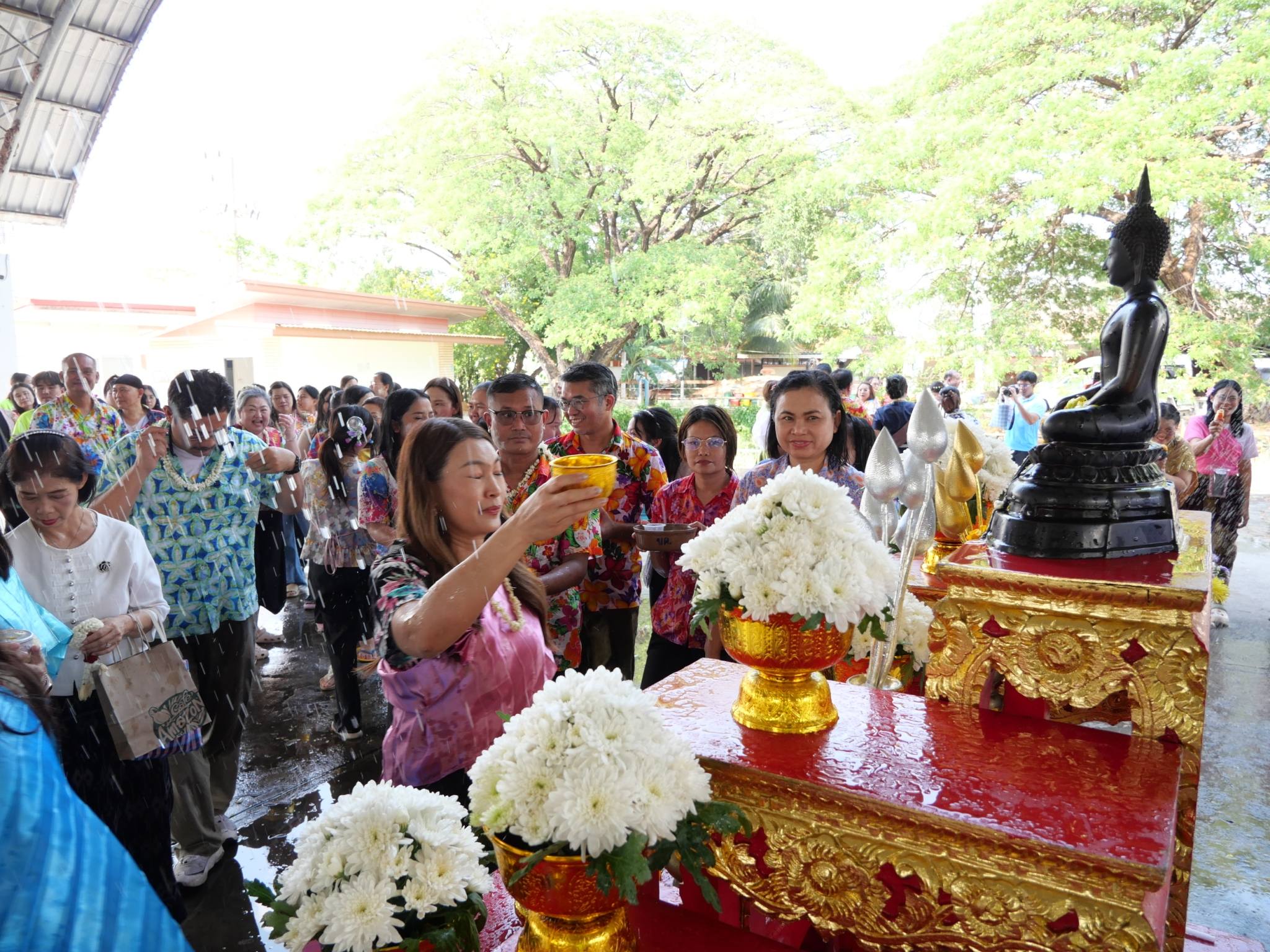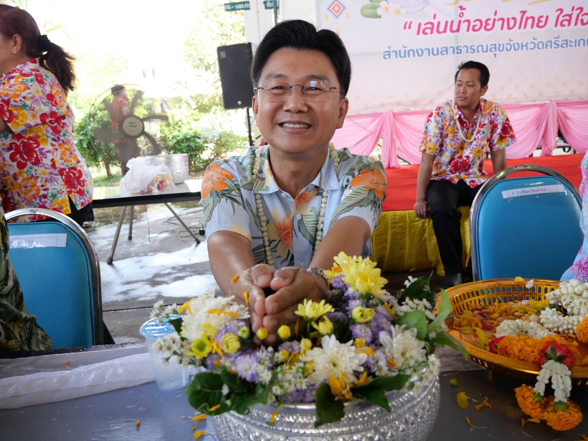 นายแพทย์ลักษณะเลิศ วรรณภาสนี ผู้อำนวยการโรงพยาบาลศรีสะเกษ พร้อมด้วย คณะผู้บริหาร ร่วมงานสืบสานประเพณีสงกรานต์ เล่นน้ำอย่างไทย ใส่ใจวัฒนธรรม สำนักงานสาธารณสุขจังหวัดศรีสะเกษ 2569