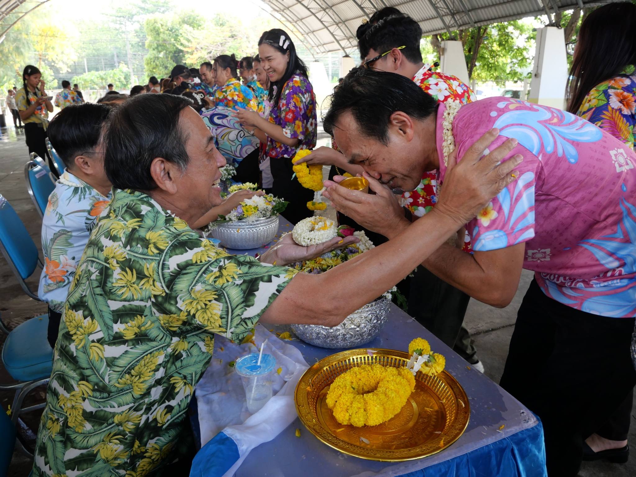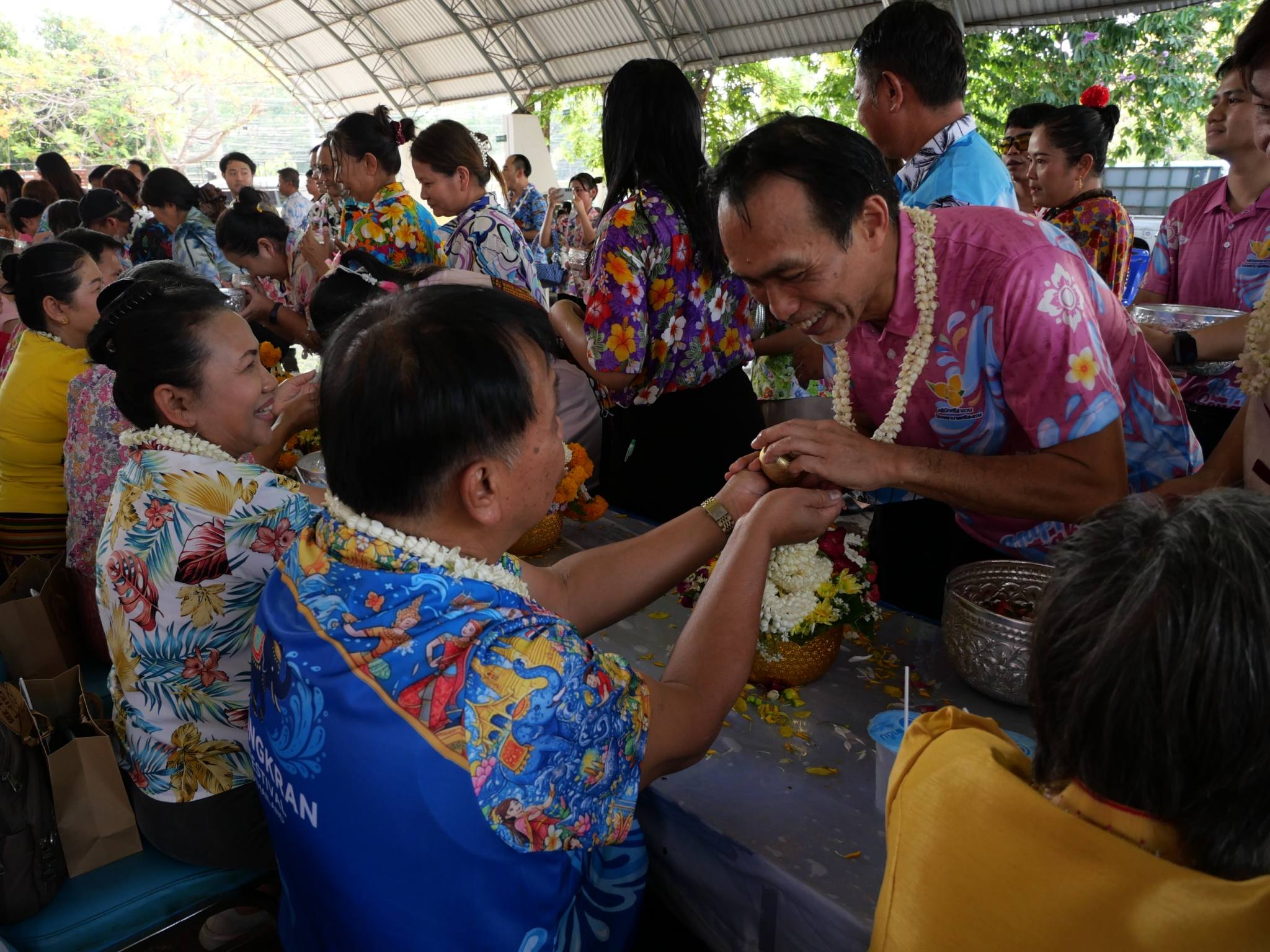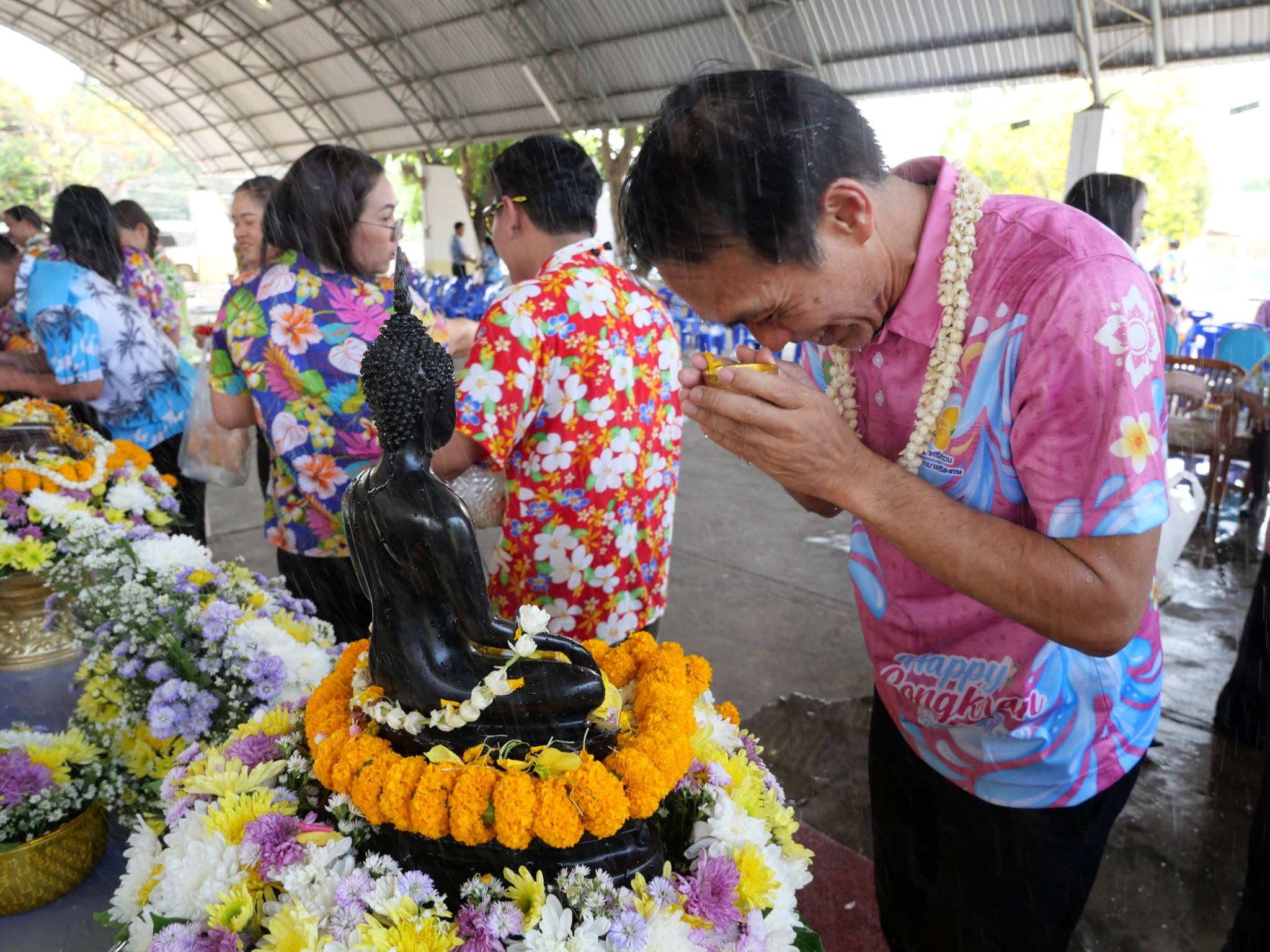 นายแพทย์ลักษณะเลิศ วรรณภาสนี ผู้อำนวยการโรงพยาบาลศรีสะเกษ พร้อมด้วย คณะผู้บริหาร ร่วมงานสืบสานประเพณีสงกรานต์ เล่นน้ำอย่างไทย ใส่ใจวัฒนธรรม สำนักงานสาธารณสุขจังหวัดศรีสะเกษ 2569