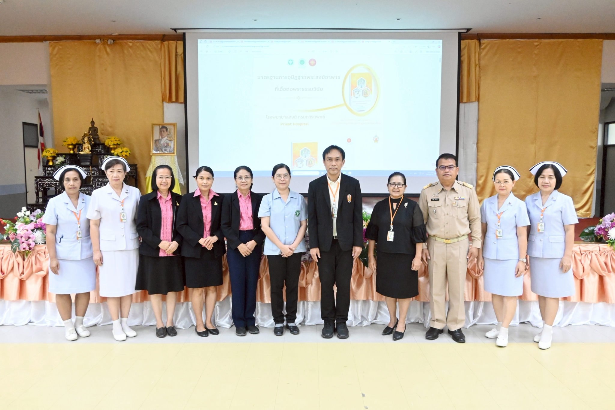 นายแพทย์ลักษณะเลิศ วรรณภาสินี ผู้อำนวยการโรงพยาบาลศรีสะเกษ ประธานในพิธี เปิดโครงการอบรมเตรียมความพร้อมเจ้าหน้าที่โรงพยาบาลศรีสะเกษ เพื่อมุ่งสู่โรงพยาบาลอุปัฏฐากพระสงฆ์อาพาธเอื้อต่อพระธรรมวินัย ประจำปี 2569