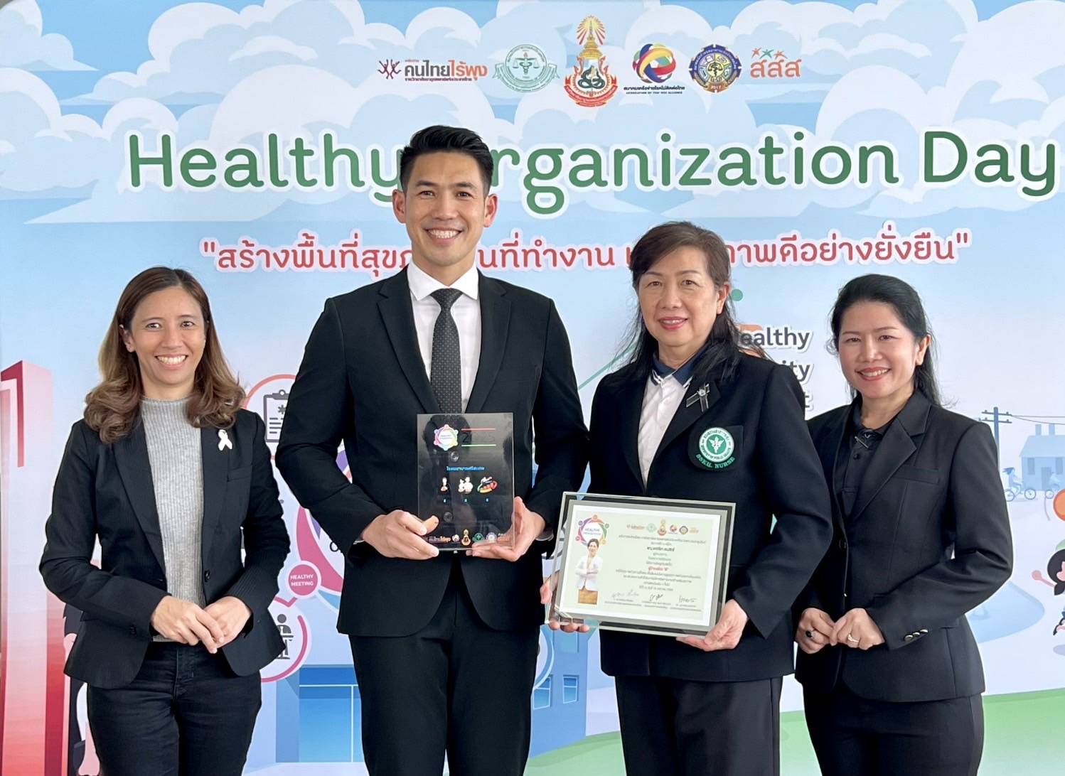 นางสาวปิยมาศ จำรัสธนสาร รองผู้อำนวยการฝ่ายการพยาบาล พร้อมด้วยคณะผู้บริการ ร่วมงาน Healthy Organization Day และพิธีมอบรางวัล Healthy Organization Award