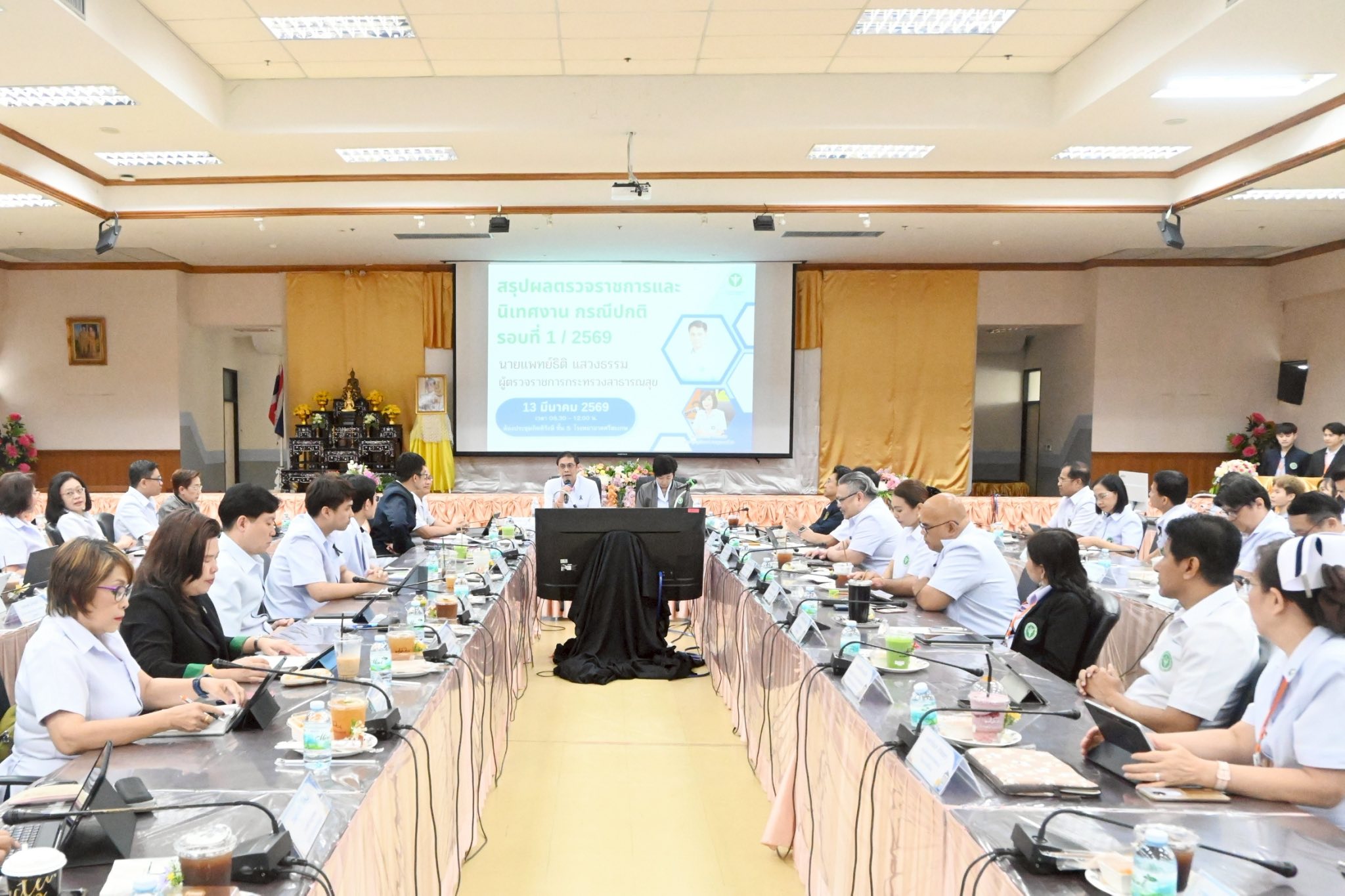 นายแพทย์ลักษณะเลิศ วรรณภาสนี ผู้อำนวยการโรงพยาบาลศรีสะเกษ พร้อมด้วยคณะผู้บริหาร แพทย์ พยาบาล และเจ้าหน้าที่โรงพยาบาลศรีสะเกษ ที่มีส่วนเกี่ยวข้อง ร่วมประชุมสรุปผลตรวจราชการ และนิเทศงาน กรณีปกติ รอบที่ 1 ประจำปีงบประมาณ พ.ศ. 2569 เขตสุขภาพที่ 10 จังหวัดศรีสะเกษ โดยมีนายแพทย์ธิติ แสวงธรรม ผู้ตรวจราชการกระทรวงสาธารณสุข เขตสุขภาพที่ 10 พร้อมด้วย แพทย์หญิงอุไรวรรณ จำนรรจ์สิริ สาธารณสุขนิเทศก์ เขตสุขภาพที่ 10 เป็นประธานการประชุม วันที่ 13 มีนาคม 2569 ณ ห้องประชุมกิตติรังษี อาคารผู้ป่วยนอก ชั้น 5 โรงพยาบาลศรีสะเกษ