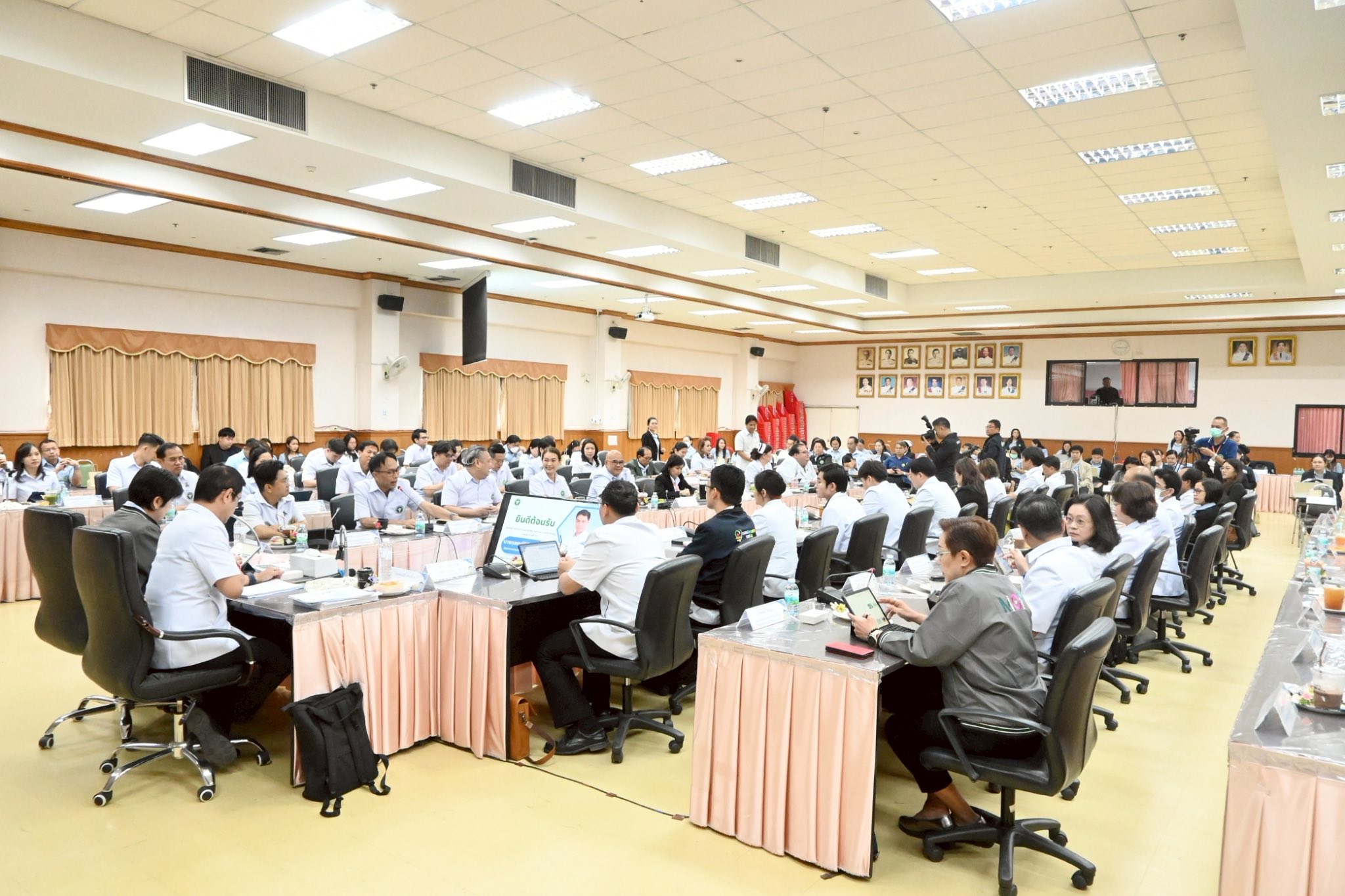 นายแพทย์ลักษณะเลิศ วรรณภาสนี ผู้อำนวยการโรงพยาบาลศรีสะเกษ พร้อมด้วยคณะผู้บริหาร แพทย์ พยาบาล และเจ้าหน้าที่โรงพยาบาลศรีสะเกษ ที่มีส่วนเกี่ยวข้อง ร่วมประชุมสรุปผลตรวจราชการ และนิเทศงาน กรณีปกติ รอบที่ 1 ประจำปีงบประมาณ พ.ศ. 2569