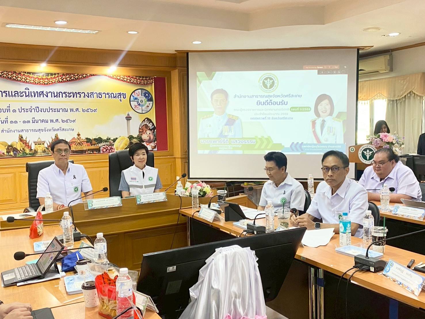 นายแพทย์ลักษณะเลิศ วรรณภาสนี ผู้อำนวยการโรงพยาบาลศรีสะเกษ พร้อมด้วยคณะผู้บริหาร แพทย์ พยาบาล และเจ้าหน้าที่โรงพยาบาลศรีสะเกษ ที่มีส่วนเกี่ยวข้อง ร่วมประชุมสรุปผลตรวจราชการ และนิเทศงาน กรณีปกติ รอบที่ 1 ประจำปีงบประมาณ พ.ศ. 2569