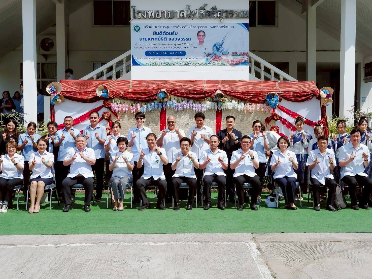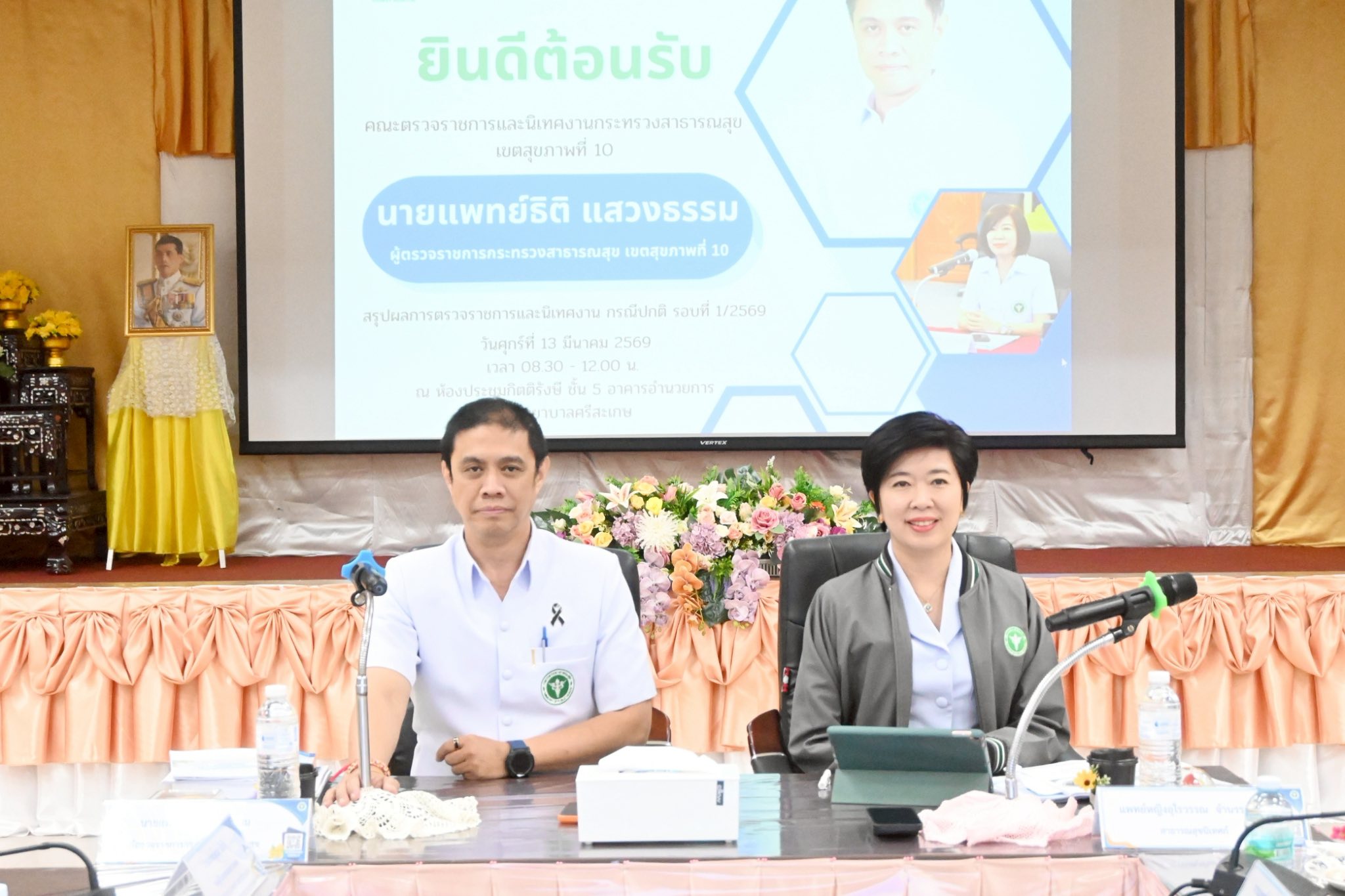 นายแพทย์ลักษณะเลิศ วรรณภาสนี ผู้อำนวยการโรงพยาบาลศรีสะเกษ พร้อมด้วยคณะผู้บริหาร แพทย์ พยาบาล และเจ้าหน้าที่โรงพยาบาลศรีสะเกษที่มีส่วนเกี่ยวข้อง ร่วมต้อนรับผู้ตรวจราชการกระทรวงสาธารณสุข เขตสุขภาพที่ 10 และคณะตรวจราชการและนิเทศงานกรณีปกติ รอบที่ 1 ประจำปีงบประมาณ พ.ศ. 2569